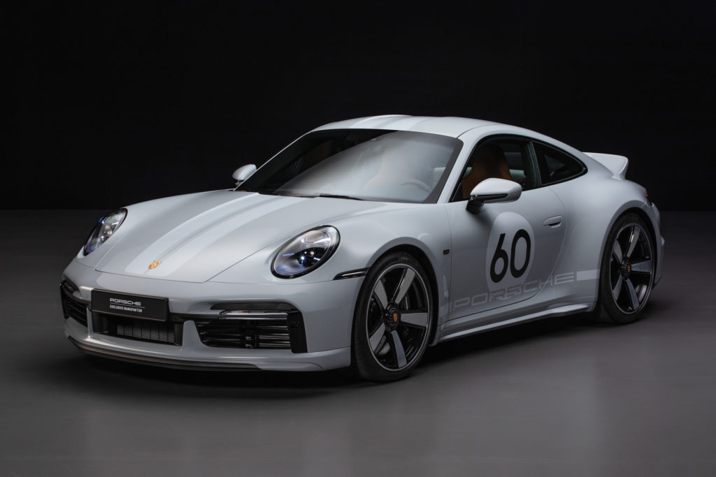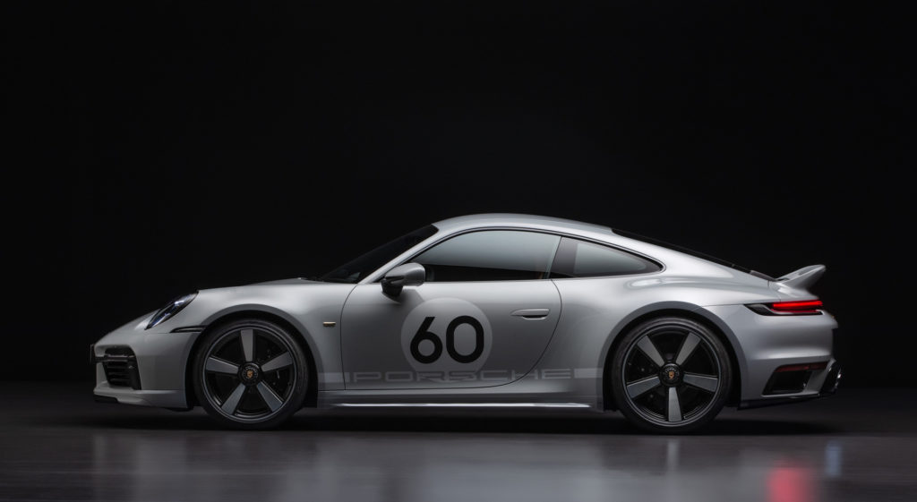Wie schon beim ersten 911 Sport Classic (Typ 997) von 2009 ließen sich die Designer bei der exklusiven Lackierung der Kleinserie vom Modegrau der frühen Porsche 356 inspirieren. „Der neue 911 Sport Classic begründet das Zeitalter des Sportgraumetallic“, so Michael Mauer, Leiter Style Porsche. „Langweilig ist Grau nie, ein Statement sehr häufig und cool tatsächlich immer.“ Lackierte Doppelstreifen auf Fronthaube, Dach und Heckspoiler in Sportgrau hell unterstreichen die sportliche Optik.