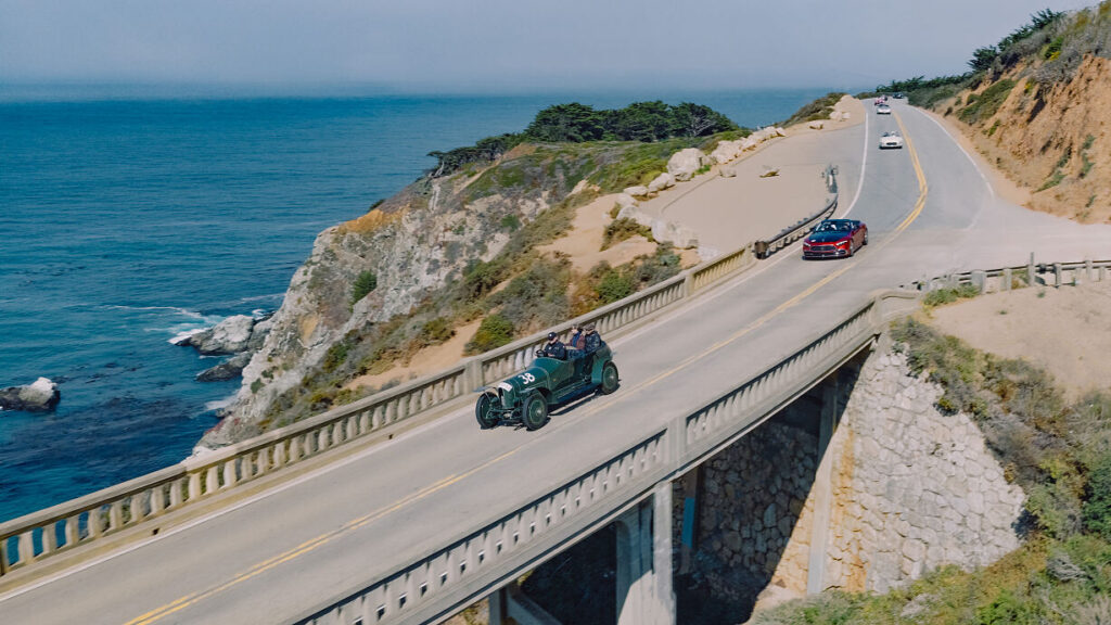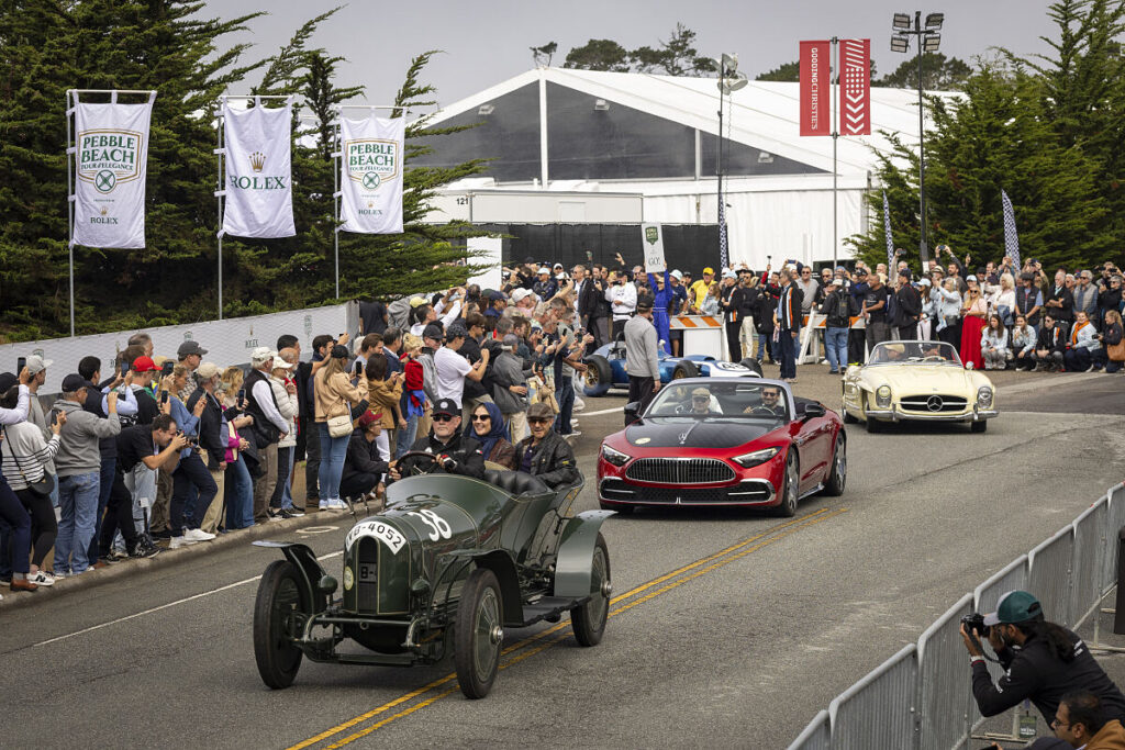 Auftakt einer jeden Pebble Beach Automotive Week: die Tour d’Elegance. Der Benz Prinz-Heinrich-Wagen von 1910 (59 kW/80 PS) führte in diesem Jahr die 100 Kilometer lange Ausfahrt an. Am Steuer: Marcus Breitschwerdt. Lediglich zwei Exemplare dieses Rennwagentyps sind erhalten. Das technisch innovative Fahrzeug hat einen 5,7-Liter-Vierzylindermotor mit Vierventiltechnik und Doppelzündung, Kardanantrieb und eine windschlüpfige Karosserie mit charakteristischem Spitzheck. Entwickelt wurde er für die Prinz-Heinrich-Fahrt, benannt nach dem Bruder des deutschen Kaisers. Der Wettbewerb war Anfang des 20. Jahrhunderts eines der bedeutendsten Automobilrennen Europas. Die Experten des Mercedes-Benz Classic Centers restaurierten den Prinz-Heinrich-Wagen originalgetreu und mit dem Anspruch höchster Authentizität und machten ihn auch für Pebble Beach 2025 einsatzbereit.