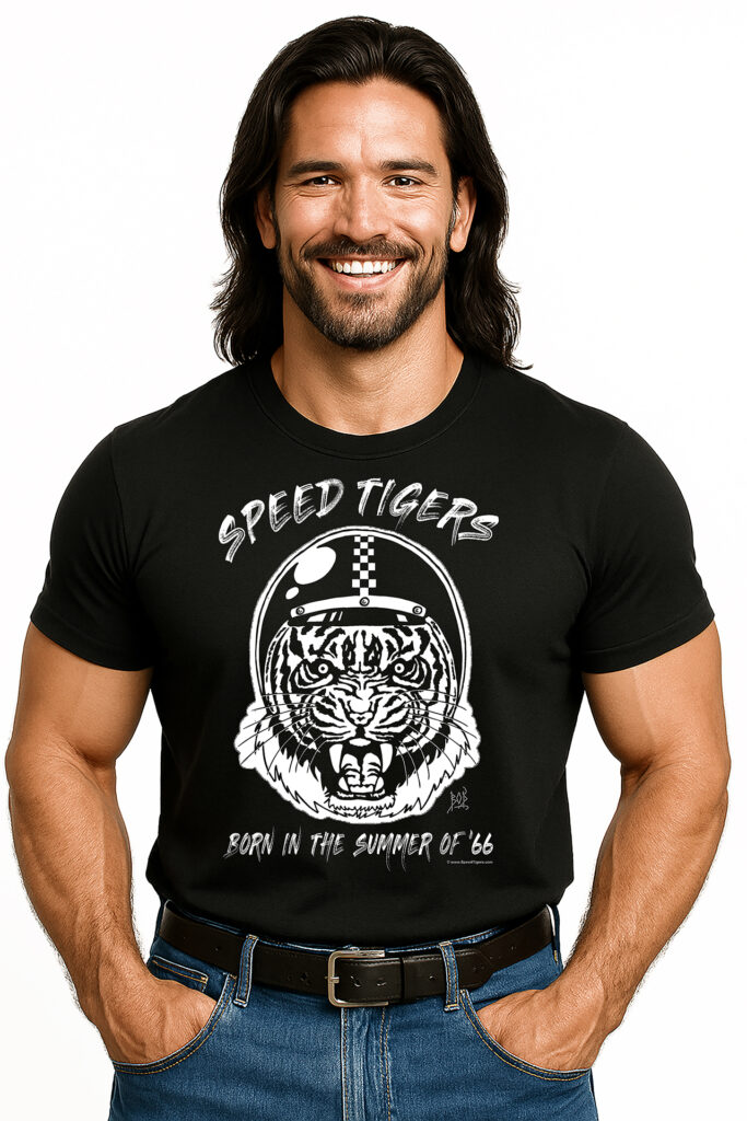 SPEED TIGERS bekennen Farbe – natürlich in Schwarz! Mit der kraftvollen Raubkatze mit offenem Jethelm, die sie groß und stolz in Weiß auf der Brust ihres Shirts zeigen. Das neue SPEED TIGERS Accessoire in Top-Qualität gibt es ab 32,50 Euro in den Größen S bis 3XL.