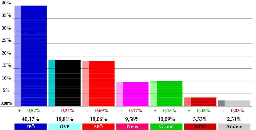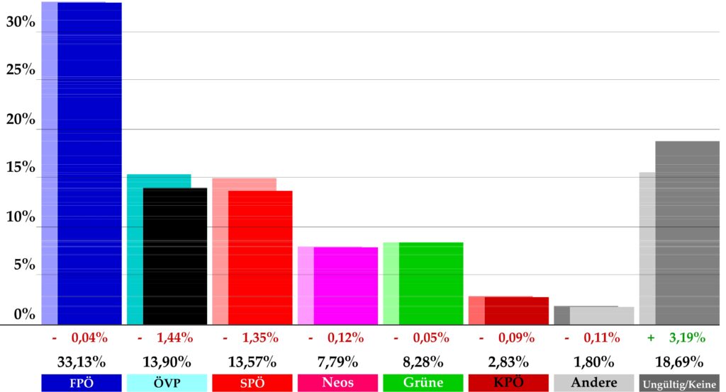 Unter „Andere“ fallen Stimmen für Kleinparteien unter 1%, bzw. die nicht bundesweit zur Nationalratswahl antreten.