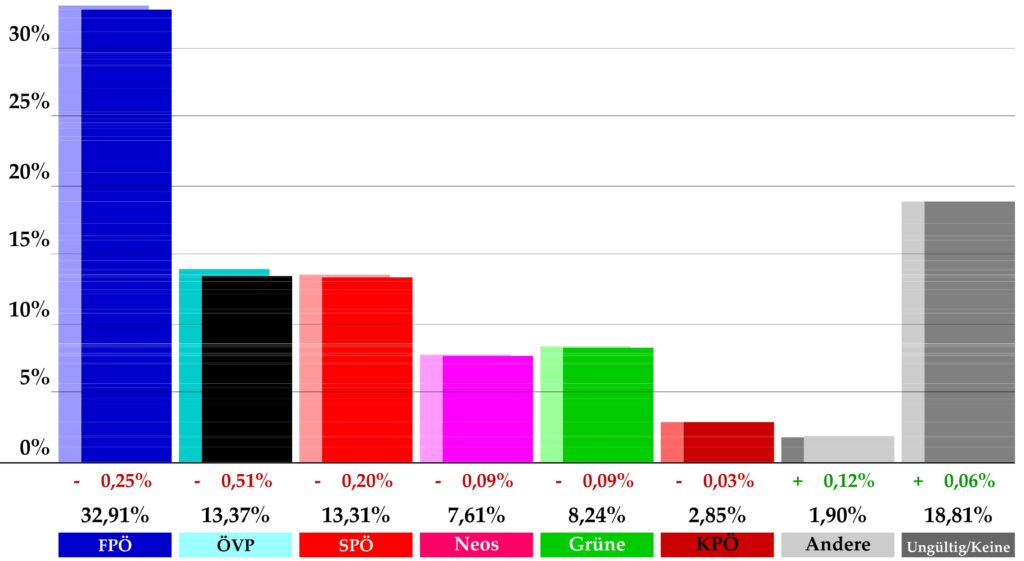 Unter „Andere“ fallen Stimmen für Kleinparteien unter 1%, bzw. die nicht bundesweit zur Nationalratswahl antreten.