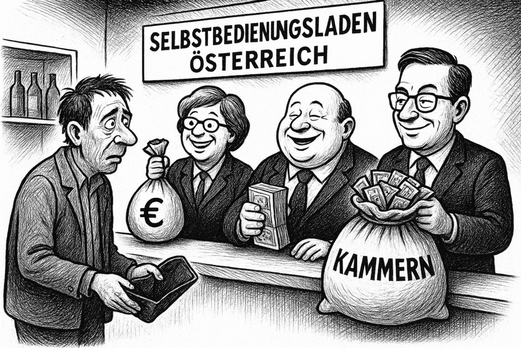 Wir leben in einem Land, in dem der Staat seine Bürger behandelt wie Zahlesel, die man regelmäßig melkt, während sich die Kaste der Funktionäre den Rahm abschöpft. Und wer glaubt, das sei übertrieben, der blicke auf die Bilanzen der Kammern, auf ihre aufgeblähten Apparate, ihre Gagen, ihre Dienstwagenflotten, ihre Benefits, ihre Vergünstigungen.