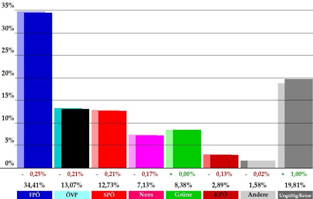 Unter „Andere“ fallen Stimmen für Kleinparteien unter 1%, bzw. die nicht bundesweit zur Nationalratswahl antreten.