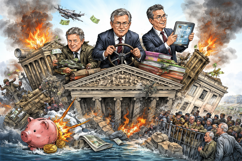 Sehr geehrte Damen und Herren, wir erleben dieser Tage ein politisches Schauspiel, das sich irgendwo zwischen Posse, Lehrstück und Farce einordnet – mit starkem Hang zur Wiederholung. Österreichs Bundesregierung bemüht sich redlich, den Eindruck von Tatkraft zu erwecken. Sie spricht viel, erklärt noch mehr und stolpert dabei mit bewundernswerter Regelmäßigkeit von einem selbstverschuldeten Fiasko ins nächste. Nüchtern betrachtet ist es nicht das Scheitern an widrigen Umständen, sondern das konsequente Scheitern am eigenen Unvermögen.