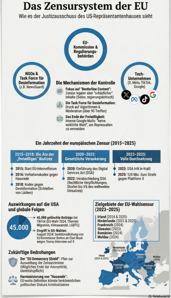 Laut den in den USA veröffentlichten Unterlagen übten EU-Institutionen massiven Druck auf große Plattformen aus, um Inhalte zu Corona-Maßnahmen, Impfkritik und politischen Kampagnen zu unterdrücken. „Hier ging es nie um den Schutz vor strafbaren Inhalten, sondern um die Kontrolle des politischen Diskurses. Genau das ist der Kern des Problems“, betont Steger.
