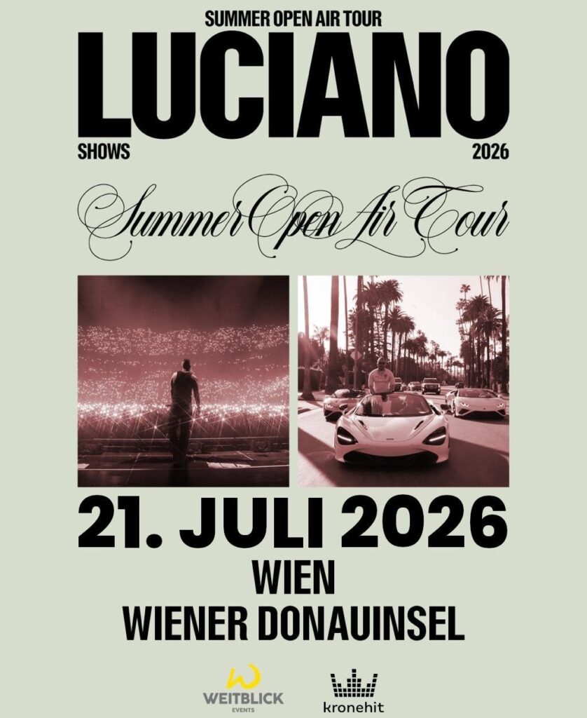 Lucianos Tourstop in Wien am 21. Juli ist – neben Roxette am 22. und Rita Ora am 23. Juli – ein weiteres Highlight des Donauinsel Open Air 2026. Zusätzlich zu den drei Einzelkonzerten lockt das Festival an zwei Wochenenden mit unvergesslichen Liveacts der 80er, 90er und 2000er Jahre, sowie der besten Stimmung vom Ballermann: