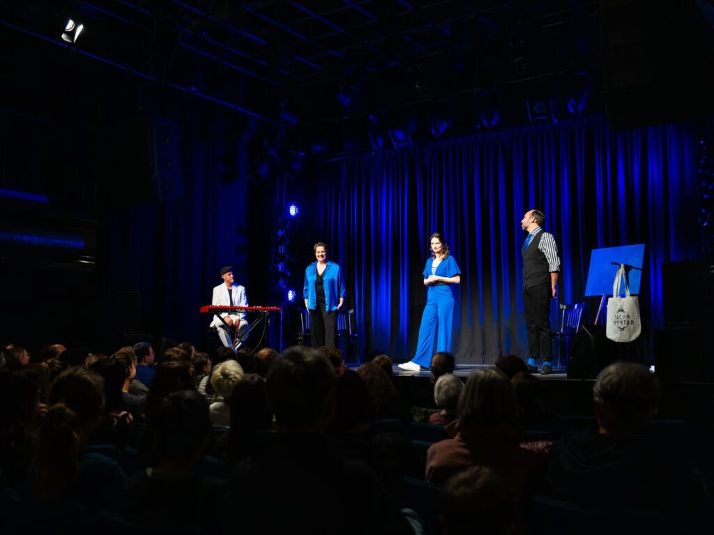 Gemeinsam erfinden wir 4 Spontanisten einen noch nie dagewesenen, einzigartigen Abend voller Theater und Musik. Vielleicht wird’s zum Lachen, vielleicht auch zum Weinen – mit Sicherheit aber feiern wir jeden Abend gemeinsam mit Ihnen die Premiere des improvisiertesten Musicals der Stadt!