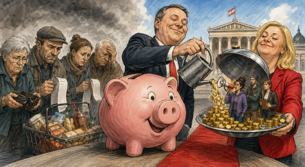 Sehr geehrte Damen und Herren, wir erleben dieser Tage ein politisches Schauspiel von bemerkenswerter Eleganz – oder, je nach Betrachtungswinkel, von erstaunlicher Dreistigkeit. Ein Schauspiel, in welchem Sparsamkeit gepredigt, aber Großzügigkeit praktiziert wird. Freilich nicht gegenüber dem Volk, sondern gegenüber jenen Organisationen, die sich im ideologischen Vorfeld der Macht bewegen.